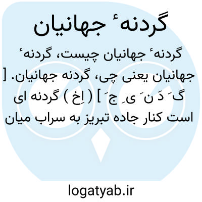 گردنه جهانیان. [ گ َ دَ ن َ ی ِ ج َ ] ( اِخ ) گردنه ای است کنار جاده تبریز به سراب میان ارشتناب و کردکندی، واقع در 51800گزی تبریز.