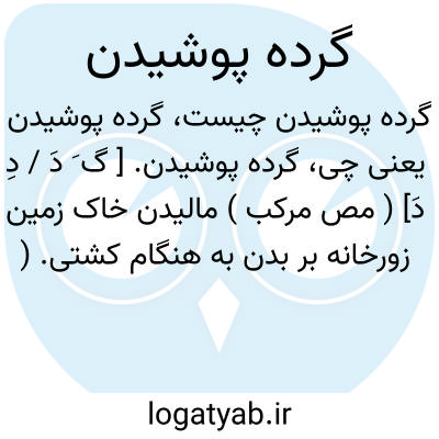 گرده پوشیدن. [ گ َ دَ / دِ دَ] ( مص مرکب ) مالیدن خاک زمین زورخانه بر بدن به هنگام کشتی. ( غیاث ). در وقت کشتی گرفتن خاک مالیدن بر بدن، و این از اهل زبان به تحقیق پیوسته: