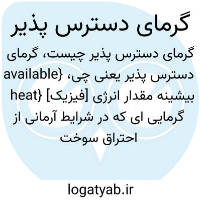 {available heat} [فیزیک] بیشینه مقدار انرژی گرمایی ای که در شرایط آرمانی از احتراق سوخت خاصی به دست می آید