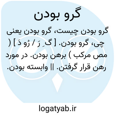 گرو بودن. [ گ ِ رَ / رُو دَ ] ( مص مرکب ) برهن بودن. در مورد رهن قرار گرفتن. || وابسته بودن. علاقه مند بودن: