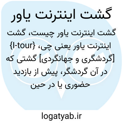 {I-tour} [گردشگری و جهانگردی] گشتی که در آن گردشگر، پیش از بازدید حضوری یا در حین بازدید، با مراجعه به وبگاهی در اینترنت گشت شنیداری مورد علاقۀ خود را بارگیری (download ) می کند