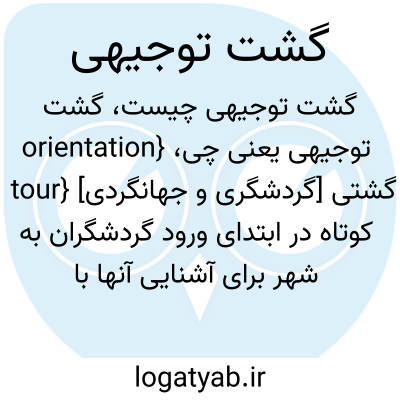 {orientation tour} [گردشگری و جهانگردی] گشتی کوتاه در ابتدای ورود گردشگران به شهر برای آشنایی آنها با وضعیت و امکانات موجود