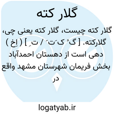 گلارکته. [ گ ُ ک َت َ / ت ِ ] ( اِخ ) دهی است از دهستان احمدآباد بخش فریمان شهرستان مشهد واقع در 30هزارگزی شمال باختری فریمان. هوای آن معتدل و دارای 274 تن سکنه است. آب آن از قنات و محصول آن غلات است. شغل اهالی زراعت و راه آن مالرو میباشد. ( از فرهنگ جغرافیایی ایران ج 9 ).
