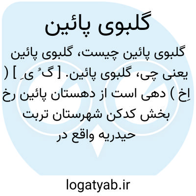 گلبوی پائین. [ گ ُ ی ِ ] ( اِخ ) دهی است از دهستان پائین رخ بخش کدکن شهرستان تربت حیدریه واقع در 21هزارگزی شمال کدکن، سر راه ارابه رو کدکن به تلخ بخش. هوای آن معتدل و دارای 408 تن سکنه است. آب آن از قنات و محصول آن غلات و پنبه است. شغل اهالی زراعت و گله داری و صنایع دستی آنان کرباس بافی است. راه آن مالرو و کلاته عینک آباد جزء این ده است. ( از فرهنگ جغرافیایی ایران ج 9 ).