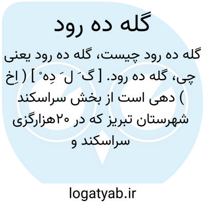 گله ده رود. [ گ َ ل َ دِه ْ ] ( اِخ ) دهی است از بخش سراسکند شهرستان تبریز که در 20هزارگزی سراسکند و 22هزارگزی راه شوسه تبریزبه میانه واقع شده است. هوای آن معتدل و دارای 597 تن سکنه است. آب آنجا از چشمه و رود تأمین میشود. محصول آن غلات، حبوبات و شغل اهالی زراعت و گله داری و راه آن مالرو است. ( از فرهنگ جغرافیایی ایران ج 4 ).