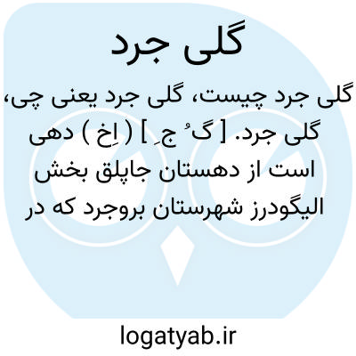گلی جرد. [ گ ُ ج ِ ] ( اِخ ) دهی است از دهستان جاپلق بخش الیگودرز شهرستان بروجرد که در 32هزارگزی شمال باختری الیگودرز و 5هزارگزی خاور راه شوسه شاه زند به ازنا واقع است. هوای آن معتدل و سکنه اش 522 تن است. آب آنجا از قنات و چاه تأمین میشود. محصول آن غلات و شغل اهالی زراعت و راه آن اتومبیل رو است. ( از فرهنگ جغرافیایی ایرن ج 6 ).