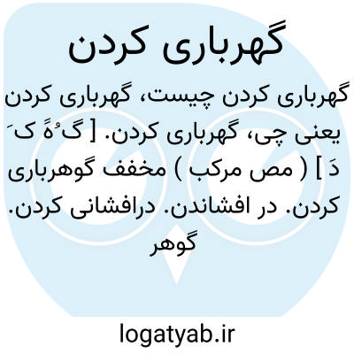 گهرباری کردن. [ گ ُهََ ک َ دَ ] ( مص مرکب ) مخفف گوهرباری کردن. در افشاندن. درافشانی کردن. گوهر ریختن. || کنایه از گریه کردن. ( بهار عجم ) ( آنندراج ). سرشک باریدن. || کنایه از سخن خوب گفتن. ( بهار عجم ) ( آنندراج ). نغز و فصیح سخن گفتن. رسائی و بلاغت داشتن.
