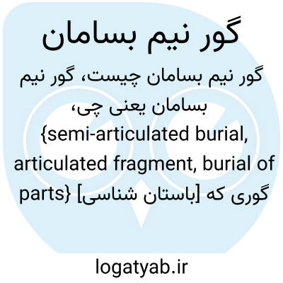 {semi-articulated burial, articulated fragment, burial of parts} [باستان شناسی] گوری که در آن نیمی از بقایای استخوانی یک جسد به حالت منظم و طبیعی قرار دارد و بخش های دیگر درهم ریخته و نامنظم است