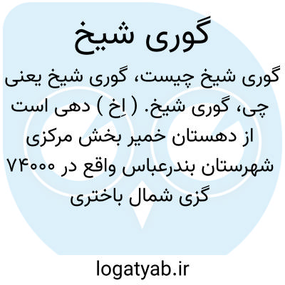 گوری شیخ. ( اِخ ) دهی است از دهستان خمیر بخش مرکزی شهرستان بندرعباس واقع در 74000 گزی شمال باختری بندرعباس، سر راه فرعی لار به بندرعباس. جلگه و گرمسیر است. سکنه آن 250 تن است. آب آن از چاه است. محصول آن خرما و غلات و شغل اهالی زراعت وراه آن فرعی است. ( از فرهنگ جغرافیایی ایران ج 8 ).