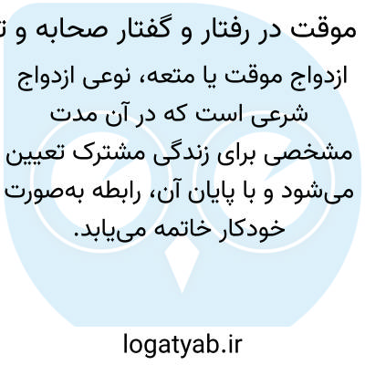 [ویکی نور] «ازدواج موقت در رفتار و گفتار صحابه و تابعین» اثر جناب استاد نجم الدین طبسی، معرفی کوتاه و پژوهشی مختصر در باره مشروعیت و مستندات ازدواج موقت و دفاع از آن است.