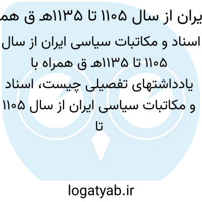 [ویکی نور] اسناد و مکاتبات سیاسی ایران از سال ۱۱۰۵ تا ۱۱۳۵هـ.ق همراه با یادداشتهای تفصیلی. « اسناد و مکاتبات سیاسی ایران از سال1105تا1135ق.»کتابی است به زبان فارسی نوشته دکتر عبدالحسین نوایی، پژوهشگر معاصر ایرانی. مقدمه نویسنده و بخش های متعددی که حاوی نامه های ارسالی به شاه و نیز جواب وی بدان ها و همچنین فرمان های صادره از جانب شاه می باشد، ساختار کتاب حاضر را تشکیل می دهد. کتاب فاقد تبویب و تفصیل است. این کتاب هشتمین حلقه از زنجیره اسناد و مکاتبات سیاسی ایران است. پیش از این از مجموعه «اسناد و مکاتبات سیاسی ایران» هفت مجلد منتشر شده است که عبارتند از: 1- اسناد و مکاتبات تاریخی ایران «از تیمور تا شاه اسماعیل» که در سال 1340 در بنگاه ترجمه و نشر کتاب چاپ شد و در سال 1356 تجدید چاپ گردید. 2- اسناد و مکاتبات تاریخی «شاه اسماعیل» (بهمن سال 1347)