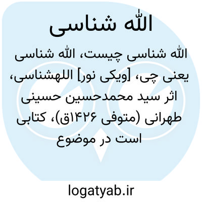 [ویکی نور] الله‎شناسی، اثر سید محمدحسین حسینی طهرانی (متوفی 1426ق)، کتابی است در موضوع خداشناسی و در مباحثی چون: توحید ذاتی و افعالی، حقیقت ربط موجودات با پروردگار، لقاء الله، رد بر مکتب‎های انحرافی در مسئله توحید، رساله الحاقیه در رد بر قسمتی از کتاب «الأخبار الدخیلة» و اثبات صحت دعای وارد در ماه رجب.