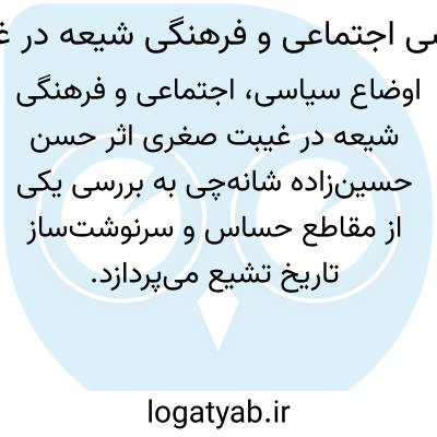 [ویکی نور] اوضاع سیاسی، اجتماعی و فرهنگی شیعه در غیبت صغری اثر حسن حسین زاده شانه چی، دوره نزدیک به یک صد ساله که با غیبت امام دوازدهم(عج) در 260ق آغاز و با درگذشت آخرین نائب، به سال 329ق ختم می گردد را، معرفی می نماید.