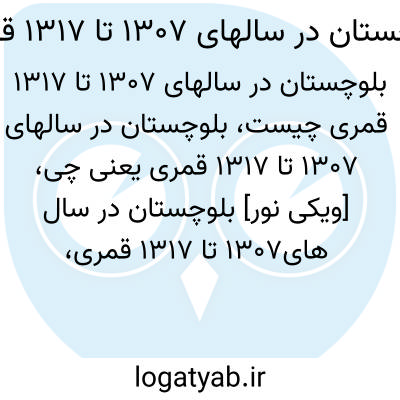 [ویکی نور] بلوچستان در سال های1307 تا 1317 قمری، کتابی است به زبان فارسی که به بررسی برخی اسناد تاریخی درباره بلوچستان در فاصله سال های مذکور می پردازد.