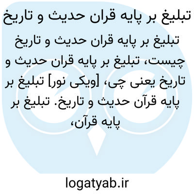 [ویکی نور] تبلیغ بر پایه قرآن حدیث و تاریخ. تبلیغ بر پایه قرآن، حدیث و تاریخ، اثر محمد محمدی ری شهری، حاصل تلاش های فراوانی برای ارائه یک مجموعه منسجم درباره اصلی ترین و مهم ترین وظیفه دانشمندان و آگاهان دینی، یعنی تبلیغ پیام های سازنده الهی و ارزش های اسلامی است.