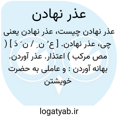 عذر نهادن. [ ع ُ ن ِ / ن َ دَ ] ( مص مرکب ) اعتذار. عذر آوردن. بهانه آوردن: و عاملی به حضرت خویشتن استدعا کرد صد عذر نهاد. ( کلیله و دمنه ). || عذر پذیرفتن. عذر خواستن. معذور داشتن: