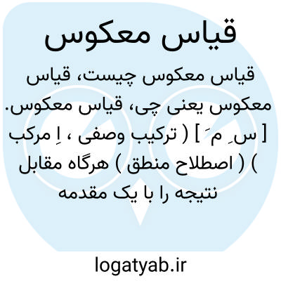 قیاس معکوس. [ س ِ م َ ] ( ترکیب وصفی، اِ مرکب ) ( اصطلاح منطق ) هرگاه مقابل نتیجه را با یک مقدمه تألیف کنند تا مقابل دیگر مقدمه نتیجه دهد آن قیاس را معکوس خوانند. ( فرهنگ فارسی معین ). رجوع به قیاس دور شود.