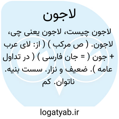 لاجون. ( ص مرکب ) ( از: لای عرب + جون ( = جان فارسی ) ( در تداول عامه ). ضعیف و نزار. سست بنیه. ناتوان. کم بنیه. بی بنیه.