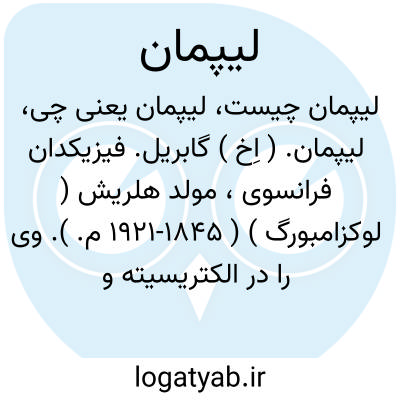 لیپمان. ( اِخ ) گابریل. فیزیکدان فرانسوی، مولد هلریش ( لوکزامبورگ ) ( 1845-1921 م. ). وی را در الکتریسیته و عکاسی رنگین تحقیقات مفیدی است.