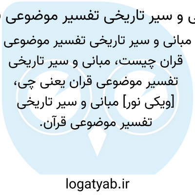[ویکی نور] مبانی و سیر تاریخی تفسیر موضوعی قرآن. مبانی و سیر تاریخی تفسیر موضوعی قرآن اثری است به زبان فارسی نوشته آقای بهروز یداللّه پور.نویسنده در این کتاب با اشاره به اینکه از صدر اسلام تاکنون، تفسیر قرآن به دو صورت انجام شده است:یکی تفسیر ترتیبی که با نظم و ترتیب سور قرآن مجید هماهنگی دارد و دیگری تفسیر موضوعی که با هدف دستیابی به مفاهیم و حقیقت آیات قرآن کریم براساس موضوعات مختلف انجام می پذیرد، به بررسی سیر تاریخی تفسیرنویسی موضوعی می پردازد.