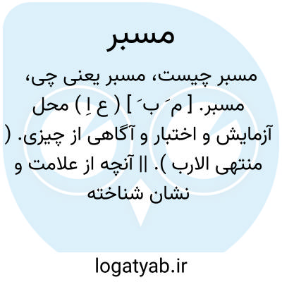 مسبر. [ م َ ب َ ] ( ع اِ ) محل آزمایش و اختبار و آگاهی از چیزی. ( منتهی الارب ). || آنچه از علامت و نشان شناخته شود: حمدت مسبره و مخبره. ( اقرب الموارد ).