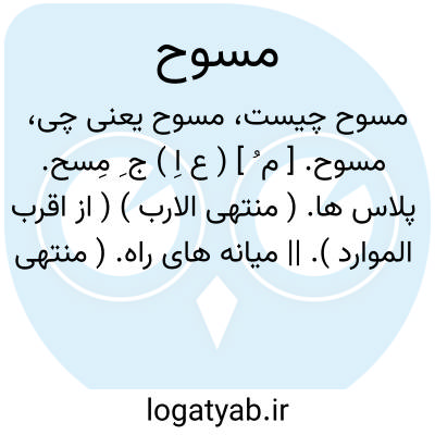 مسوح. [ م ُ ] ( ع اِ ) ج ِ مِسح. پلاس ها. ( منتهی الارب ) ( از اقرب الموارد ). || میانه های راه. ( منتهی الارب ) ( از اقرب الموارد ) ( از آنندراج ).