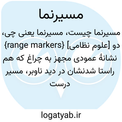 {range markers} [علوم نظامی] دو نشانۀ عمودی مجهز به چراغ که هم راستا شدنشان در دید ناوبر، مسیر درست را نشان می دهد و به این ترتیب، به عملیات ناوبری کمک می کند؛ در عملیات آب خاکی نیز این نشانه ها به ساحل نشینی شناور یا ناو کمک می کند