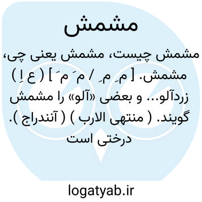 مشمش. [ م ِ م ِ / م َ م َ ] ( ع اِ ) زردآلو... و بعضی «آلو» را مشمش گویند. ( منتهی الارب ) ( آنندراج ). درختی است بلند و گاه تا به اندازه گردو بالا میرود و دارای شاخ و برگ فراوان و مغز و میوه آن اگر تلخ باشد «گلابی » و اگر شیرین باشد «لوزی » نامند و واحد آن مشمشة و برخی آلو را مشمش نامند. ( از اقرب الموارد ) ( از محیطالمحیط ). زردآلو و یا آلو. ( از ناظم الاطباء ). زردآلو. ( دهار ) ( الفاظالادویه ) ( مهذب الأسماء ). زردآلو و آن را خوبانی نیز گویند و آن میوه ای است شیرین. ( غیاث ) تفاح ارمینی. برقوق. زردآلو. ( یادداشت مؤلف ). نوعی زردآلو که در افریقا و سوریه فراوان است، این میوه بسیار ناسازگار و مضر است و در دوران جنگهای صلیبی «مزافرانشی » بمعنی «فرنگیان را می کشد» شهرت یافته است. دوران رسیدن بار درخت مشمش بیش از پانزده روز نمی پاید و به همین دلیل «دولت المشمش » مثلی است و بدان دولت و قدرت زودگذری را تعبیر کنند. ( از السنه ترکیه و فرانسویه نکت لغتی ). ابوالعباس گوید اهل کوفه او را به فتح هر دو میم گویند و اهل شام او را آلو دانند... مسیح گوید زردآلو را برقوق گویند و به رومی اصافو گویند و معلوم نیست که هرقوق از کدام لغت است... ( ترجمه ٔصیدنه، نسخه خطی کتابخانه لغت نامه دهخدا ). به فارسی زردآلو و به ترکی ارک و اقسام می باشد و بهترین او شیرین و پرآب و کم جرم وخشک او بهتر از تازه است... ( تحفه حکیم مؤمن ). و رجوع به تذکره داود ضریر انطاکی و اختیارات بدیعی والابنیه عن حقایق الادویه و فهرست مخزن الادویه شود.