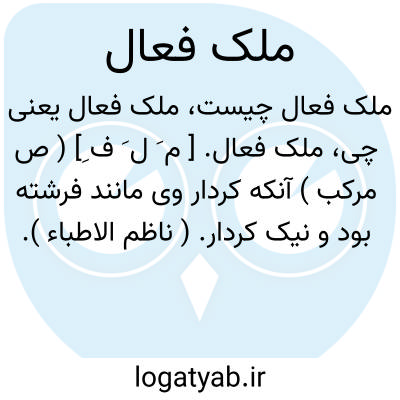 ملک فعال. [ م َ ل َ ف ِ] ( ص مرکب ) آنکه کردار وی مانند فرشته بود و نیک کردار. ( ناظم الاطباء ). ملک فعل. و رجوع به ملک فعل شود.