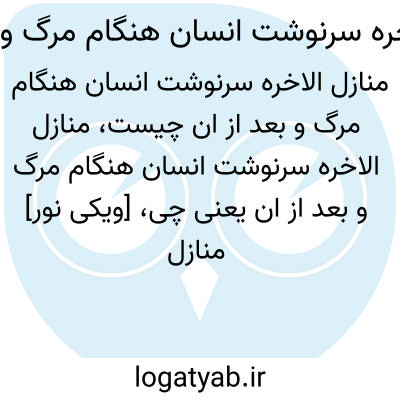[ویکی نور] منازل الآخره سرنوشت انسان هنگام مرگ و بعد از آن. «منازل الآخرة»، تالیف شیخ عباس قمی (1319 - 1254ق) و به زبان فارسی است. این کتاب، مشتمل بر بیان سرنوشت انسان در هنگام مرگ و بعد از آن می باشد.