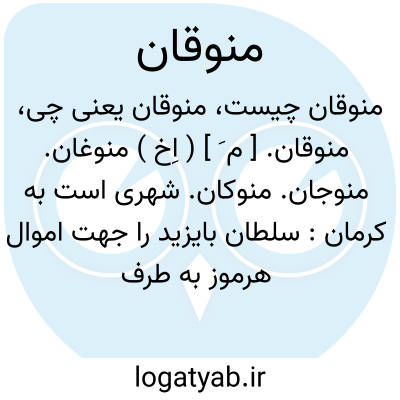 منوقان. [ م َ ] ( اِخ ) منوغان. منوجان. منوکان. شهری است به کرمان: سلطان بایزید را جهت اموال هرموز به طرف منوقان روانه کرد. ( تاریخ گزیده ص 741 ). رجوع به منوکان شود.