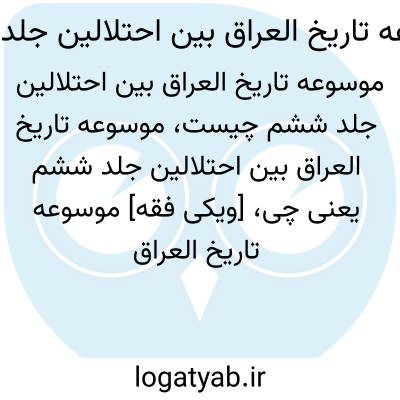 [ویکی فقه] موسوعه تاریخ العراق بین احتلالین جلد ششم (کتاب). کتاب موسوعة تاریخ العراق بین احتلالین نوشته عباس عزّاوى محامى (متوفاى ۱۳۵۰)، پژوهشى است درباره حوادث و وقایع سیاسى عراق از زمان اشغال آن از سوى مغولان تا پایان حاکمیّت عثمانى ها و اشغال آن توسط انگلیس.