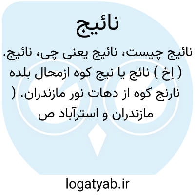 نائیج. ( اِخ ) نائج یا نیج کوه ازمحال بلده نارنج کوه از دهات نور مازندران. ( مازندران و استرآباد ص 149 ). یکی از بلوکات پانزده گانه نورو مشتمل بر 18 قریه و جمعیت تقریبی آن 3815 تن است.( جغرافیای سیاسی کیهان ص 299 ). نام یکی از دهستانهای بخش نور شهرستان آمل است و در قسمت باختری آمل واقعشده است. قسمتی از قراء این دهستان در سینه کوه «گزناسرا» و بقیه آبادیهایش در دشت و دامنه قرار دارد. محصول عمده اش برنج و پیاز و لبنیات است. آبادیهای قشلاقی مهمش عبارت است از «علی آباد» و «جوربند» و آبادیهای مهم ییلاقیش «واز» و «گزناسرا» است. این دهستان از 17 آبادی تشکیل شده است و جمعیت آن در حدود سه هزار نفر است. ( از فرهنگ جغرافیایی ایران ج 3 ص 298 ).