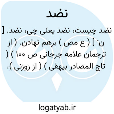 نضد. [ ن َ ] ( ع مص ) برهم نهادن. ( از ترجمان علامه جرجانی ص 100 ) ( تاج المصادر بیهقی ) ( از زوزنی ). برهم نهادن رخت را. ( از منتهی الارب ) ( آنندراج ) ( از ناظم الاطباء ). روی هم قرار دادن متاع را. ( از اقرب الموارد ) ( از متن اللغة ). || ( اِ ) نظم. ترتیب. نسق. ( یادداشت مؤلف ).