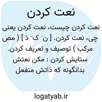 نعت کردن. [ ن َ ک َ دَ ] ( مص مرکب ) توصیف و تعریف کردن. ستایش کردن:
