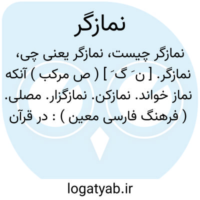 ( صفت ) ژنکه نمازخواند نمازکن نمازگزار مصلی: درقران ذکرنمازگران مومنان فراوان کرد.