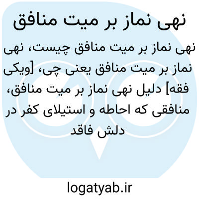 [ویکی فقه] دلیل نهی نماز بر میت منافق، منافقی که احاطه و استیلای کفر در دلش فاقد ایمان به خدا گشته و با تخلّف صریح از شرکت در میدان جهاد پرده ها را دریدند و کارشان بر ملا شد، خداوند به رسول خدا (صلّی الله علیه وآله وسلّم) دستور می دهد بر هیچ یک از آنها (منافقان) که از دنیا می روند نماز نگزار و هیچ گاه در کنار قبر او برای طلب آمرزش و استغفار نایست.