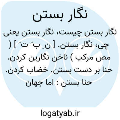نگار بستن. [ ن ِ ب َ ت َ ] ( مص مرکب ) ناخن نگارین کردن. حنا بر دست بستن. خضاب کردن. حنا بستن: اما جهان پیر نوعروس وار به گلغونه عدل ماآراسته و خود را نگار بسته است. ( تاریخ طبرستان ).