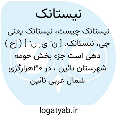نیستانک. [ ن َ ی ِ ن َ ] ( اِخ ) دهی است جزء بخش حومه شهرستان نائین، در 30هزارگزی شمال غربی نائین کنار راه نائین به اردستان، در جلگه معتدل هوایی واقع است و 1163 تن سکنه دارد. آبش از قنات و محصولش غلات و شغل مردمش زراعت است. ( از فرهنگ جغرافیائی ایران ج 10 ).