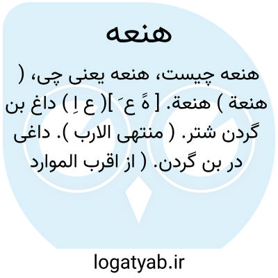 ( هنعة ) هنعة. [ هََ ع َ ]( ع اِ ) داغ بن گردن شتر. ( منتهی الارب ). داغی در بن گردن. ( از اقرب الموارد ). || ( اِخ ) ( اصطلاح ستاره شناسی ) یکی از منازل ماه از برج جوزا و آن پنج ستاره است صف کشیده بر منکب چپ جوزا و یا دو ستاره ٔسپید با هم نزدیک در کهکشان میان جوزا و ذراع مقبوضه یا هشت ستاره است به صورت کمان که آن را ذراع اسد نامند. ( منتهی الارب ). منزل ششم قمر است و رقیب نعائم.( یادداشت مؤلف ). و آن از آخر هقعه است تا هفده درجه و هشت دقیقه و سی وچهار ثانیه از جوزا. و در نزد احکامیان منزلی سعد است. ( یادداشت مؤلف ):
