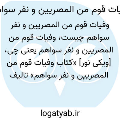 [ویکی نور] «کتاب وفیات قوم من المصریین و نفر سواهم» تالیف ابی اسحاق ابراهیم بن سعید بن عبدالله حبال به زبان عربی در بیان ذکر متوفیات در زمان حکومت فاطمیین بر مصر (سال های 375- 456ق) است. این کتاب توسط ابراهیم صالح مورد تحقیق قرار گرفته و یکی از منابع مهم در ذکر رجال برجسته کشور مصر در دوران حکومت فاطمیین می باشد.