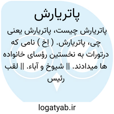پاتریارش. ( اِخ ) نامی که درتورات به نخستین رؤسای خانواده ها میدادند. || شیوخ و آباء. || لقب رئیس کلیسای یونانی و بعض کلیساهای دیگر. و بطْریق معرّب آن است.