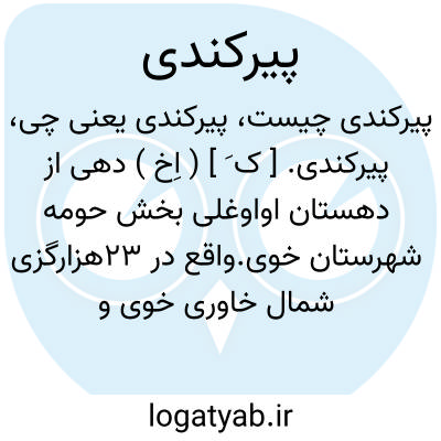 پیرکندی. [ ک َ ] ( اِخ ) دهی از دهستان اواوغلی بخش حومه شهرستان خوی.واقع در 23هزارگزی شمال خاوری خوی و 5هزارگزی شمال شوسه خوی به جلفا. دامنه، معتدل، مالاریائی دارای 1118 تن سکنه. آب آن از رود زارعان و قودوخ بوغان. محصولات آنجا پنبه، کرچک، انگور و زردآلو. شغل اهالی زراعت و گله درای. صنایع دستی جاجیم بافی و راه آن مالرو است و دبستانی دارد. ( فرهنگ جغرافیایی ایران ج 4 ).