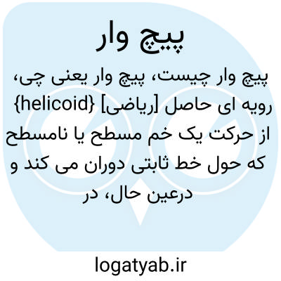 {helicoid} [ریاضی] رویه ای حاصل از حرکت یک خم مسطح یا نامسطح که حول خط ثابتی دوران می کند و درعین حال، در راستای آن خط انتقال می یابد به طوری که نسبت آهنگ دوران و آهنگ انتقال ثابت است