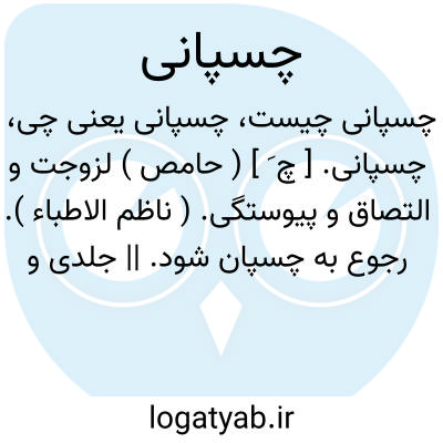 چسپانی. [ چ َ ] ( حامص ) لزوجت و التصاق و پیوستگی. ( ناظم الاطباء ). رجوع به چسپان شود. || جلدی و چالاکی. تر و فرزی. تر و چسپانی. تندی و تیزی. رجوع به چسپان شود.