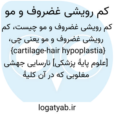 {cartilage-hair hypoplastia} [علوم پایۀ پزشکی] نارسایی جهشی مغلوبی که در آن کلیۀ بافت های کلاژن دار دچار کم رویشی می شوند