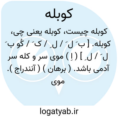 کوبله. [ ب َ ل َ / ل ِ / ک َ / کُو ب َ ل َ / ل ِ ] ( اِ ) موی سر و کله سر آدمی باشد. ( برهان ) ( آنندراج ). موی فرق سر و موی کله سر. ( ناظم الاطباء ). || در السامی فی الاسامی و دستوراللغة در معنی «حباب » و «فقاقیع» کوبله آمده. ( حاشیه برهان چ معین ). کوپله. و رجوع به کوپله شود.