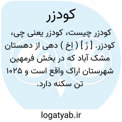 کودزر. [ زَ ] ( اِخ ) دهی از دهستان مشک آباد که در بخش فرمهین شهرستان اراک واقع است و 1025 تن سکنه دارد. ( از فرهنگ جغرافیایی ایران ج 2 ).