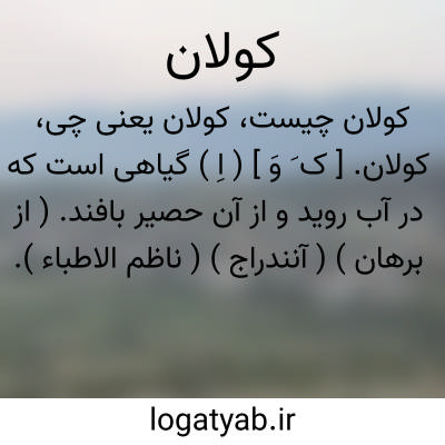 کولان. [ ک َ وَ ] ( اِخ ) نام کوهی است. ( برهان )( از ناظم الاطباء ). کوهی که رودخانه خرم آباد ملایر از آن سرچشمه می گیرد. ( یادداشت به خط مرحوم دهخدا ).