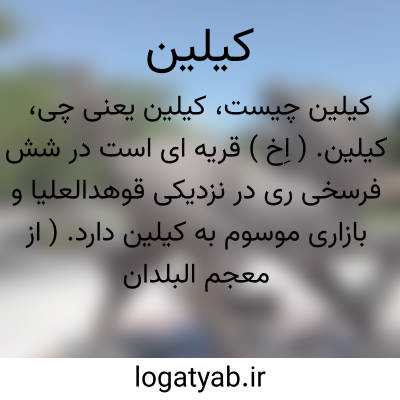کیلین. ( اِخ ) قریه ای است در شش فرسخی ری در نزدیکی قوهدالعلیا و بازاری موسوم به کیلین دارد. ( از معجم البلدان ). در ناحیت فشابویه سی پاره دیه است، کوشک و علیاباد و کیلین و جرم و قوج اغاز معظم قرای آنجاست. ( از نزهة القلوب ص 54 ).